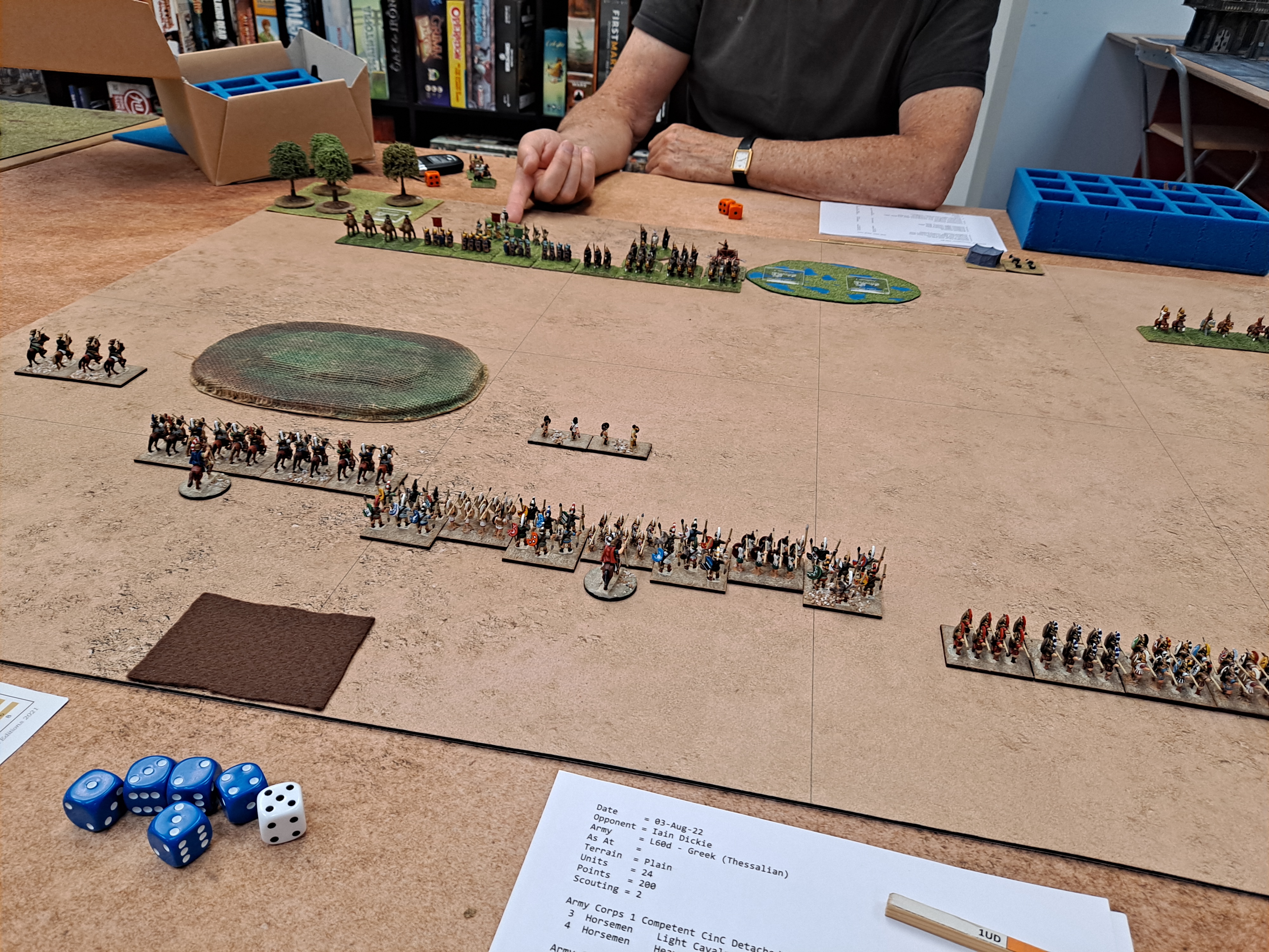 A second ADLG game this week. This time against Iain. He needed some practice with his Persians before jetting off to Lisbon in Sept. I thought my Thessalonian Greeks would provide a nice historical matchup for him.